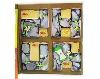 Выбери карточку с заданием и посчитай, сколько на ней изображений каждого насекомого. Расположи 4 детали на игровой доске таким образом, чтобы скрыть все изображения, кроме тех, которые указаны в задании. Существует только один вариант решения. Ответы ко всем 48 заданиям можно найти в конце книжки с заданиями.