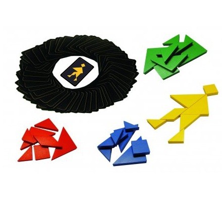 Для начала раздаете наборы с дощечками всем участникам, разложите карточки с заданиями на столе так, чтобы кусочек каждой торчал из-под других. Самый младший игрок вытягивает любую, понравившуюся ему карточку, а затем этот силуэт должны собирать все участники. Кто первым выполнил задание, кричит «Танграм» и отдает работу на проверку. Если все верно, он получает карточку. Участник, собравший в конце чемпионата больше всех карточек, объявляется победителем!