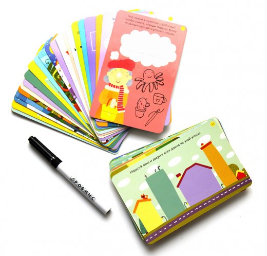 Карточки имеют компактный, удобный для детских рук размер, задания сопровождают подробные красочные иллюстрации.