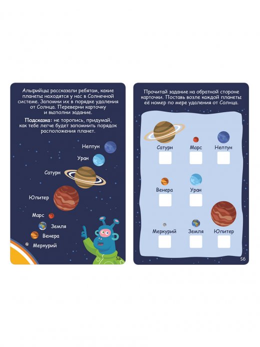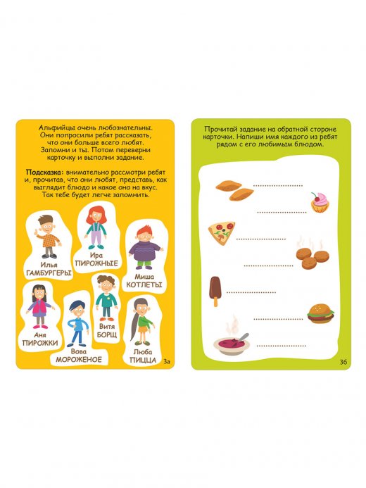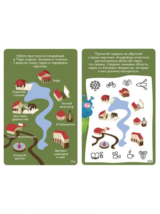 В набор входит 50 двусторонних многоразовых карточек с играми на развитие памяти и внимания разных уровней сложности и видов. Этот набор – настоящий тренажер! С помощью приемов, которые вы изучите, выполняя задания, можно не только узнавать и запоминать много нового, но и выучить иностранные языки, новые слова, цифры и многое другое.