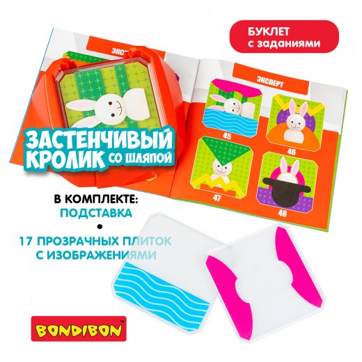 Настольная логическая игра ЗАСТЕНЧИВЫЙ КРОЛИК СО ШЛЯПОЙ от Bondibon придется по вкусу как малышам, так и деткам постарше. Порадуйте ребенка замечательной красочной головоломкой серии БондиЛогика! Поиграйте в прятки с кроликом!
