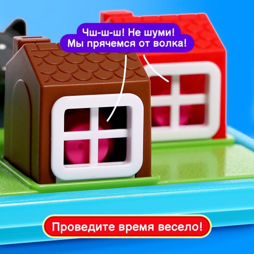 С настольной игрой «Спрячь хрюшку» ребёнок прокачает логическое мышление, внимательность и мелкую моторику. Ведь чтобы распределять поросят по домикам и прятать их от большого и страшного серого волка, мало быть храбрым! Нужно проявлять сообразительность и смекалку!