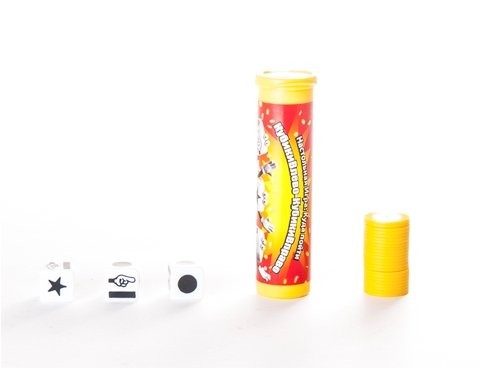 Состав: 24 фишки, 3 кубика, правила игры.