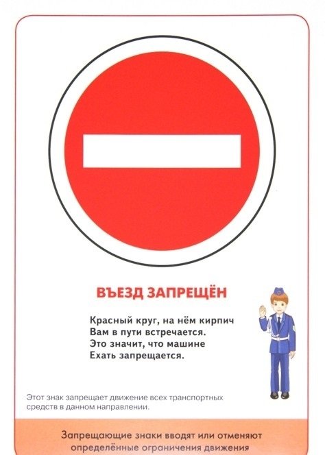 В пособии представлено 24 дорожных знака (запрещающие, предупреждающие, информационные, знаки особых предписаний). Назначение каждого знака разъясняется в стихах и подписях к картинкам.