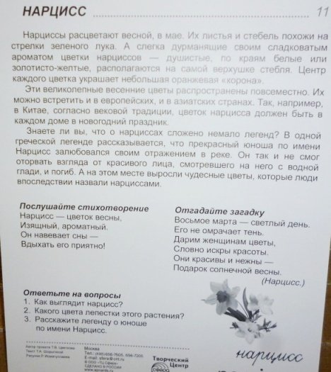 По таким карточкам можно составлять рассказы или попросить ребенка классифицировать цветы по цвету, по величине и т.д. В общем игр можно придумать огромное множество. Карточки очень яркие и красочные, поэтому без труда привлекут внимание детей. Кроме того дети узнают много подробностей о цветах – в наборе имеются довольно подробные описания и прочая интересная информация.