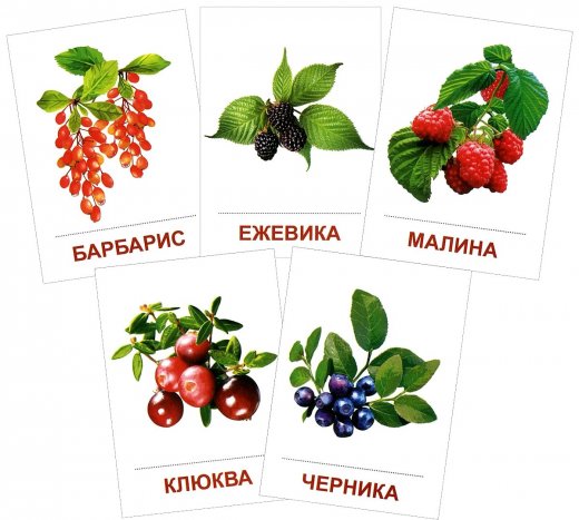 Купить Раздаточные карточки Ягоды 16 штук в Новосибирске Вы можете в магазине развивающих и настольных игр "Игры Почемучек"