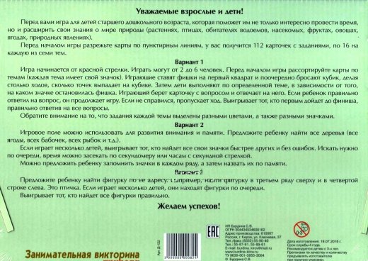 Купить Занимательную викторину Природа в Новосибирске Вы можете в магазине развивающих и настольных игр "Игры Почемучек"