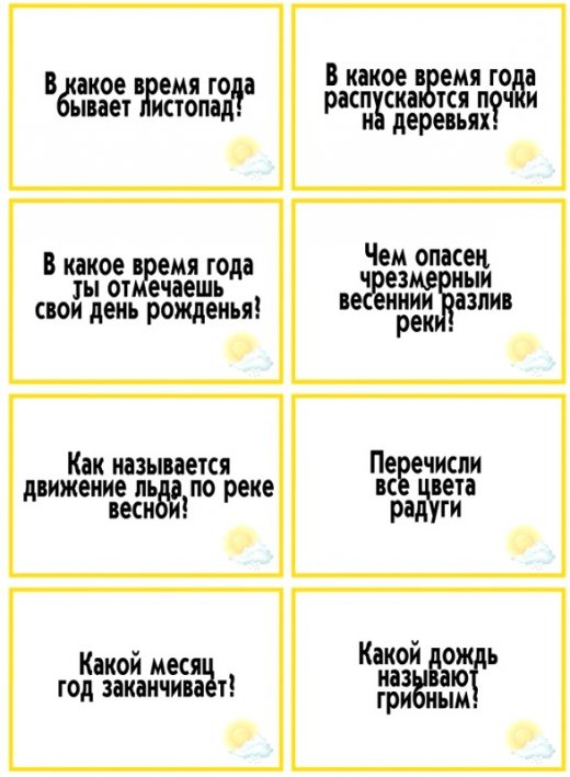 1)Игра начинается от красной стрелки. Играть может от 2 до 6 человек. Перед началом игры рассортируйте карты по темам(каждая тема имеет свой значок). Играющие ставят фишки на первый квадрат и поочередно бросают кубик, делая столько ходов, сколько точек выпадает на кубике. Затем дети выполняют по определенной теме, в зависимости от того, на каком значке остановилась фишка. Играющий берет карточку с вопросом и отвечает на него. Выигрывает тот, кто первым дойдет до финиша, правильно ответив на все вопросы. Обратите внимание на то, что задания каждой темы выделены разными цветами, а также разными значками.