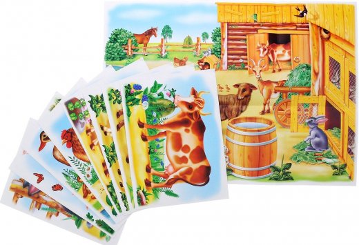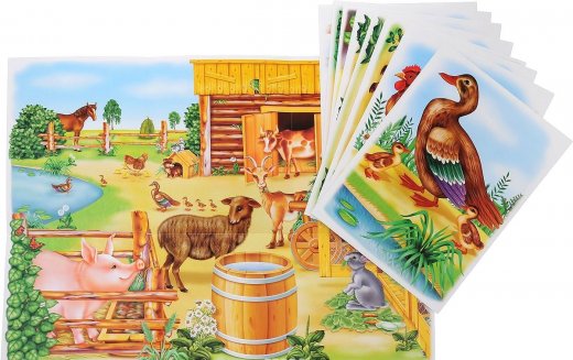 Состав набора: картина с изображением скотного двора, 8 карточек.