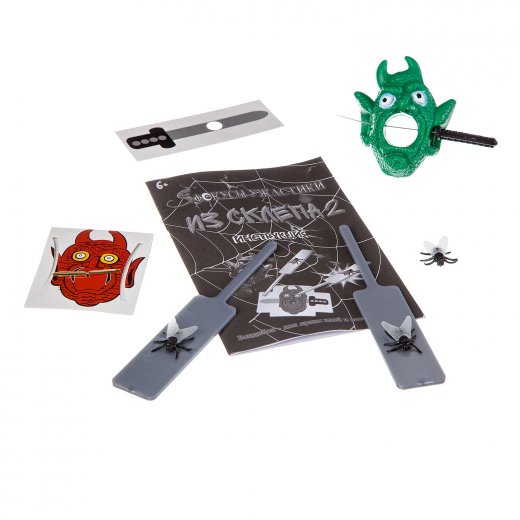 Устрой завораживающее шоу для своих друзей! С этим набором ты научишься показывать 16 леденящих душу фокусов, которые никого не оставят равнодушным. В состав набора входит голова гоблина, меч, карточка с головой гоблина и скрепка, карточка с мечом, 2 лопатки с мухами, дополнительная муха