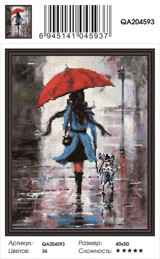 Купить Алмазную мозаику 40x50 Прогулка под дождем полная выкл в Новосибирске Вы можете в магазине развивающих и настольных игр "Игры Почемучек"