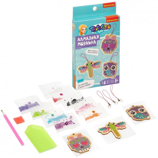 Купить Алмазную мозаику Брелоки Совушка Стрекоза Череп в Новосибирске Вы можете в магазине настольных и развивающих игр "Игры Почемучек"
