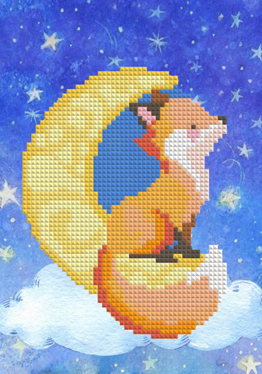 Комплектация: основа с цветной схемой на картоне, комплект квадратных страз, стилус, лоток для страз, сухой клей, подставка