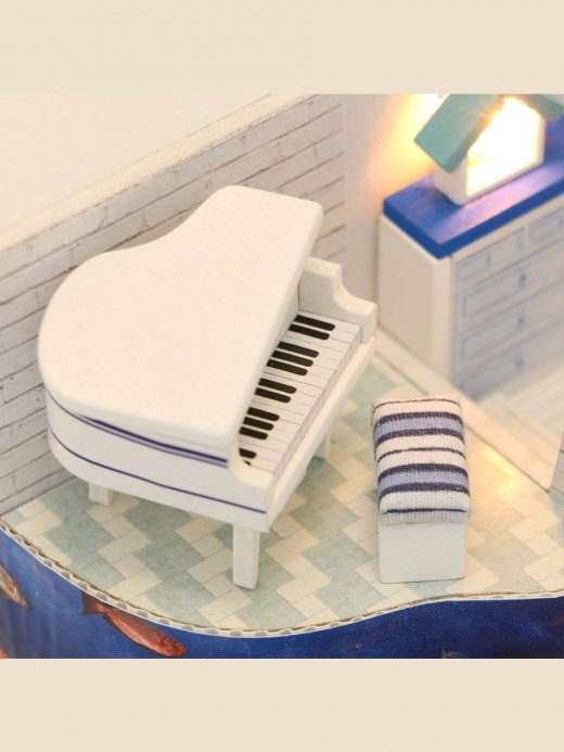 Румбокс - это готовый набор для творчества, внутри которого Вы найдете все необходимое, чтобы воссоздать собственными руками интерьер в миниатюре, используя клей и ножницы. Все детали выполнены из безопасных материалов и необыкновенно реалистичны. От проработанных в мельчайших деталях невозможно оторваться. С этим конструктором вы погружаетесь в мир волшебной и уютной комнаты с прекрасным роялем. Собранный румбокс с подсветкой может стать как необычным элементом декора, так и домиком для кукол размером 5-7 см.