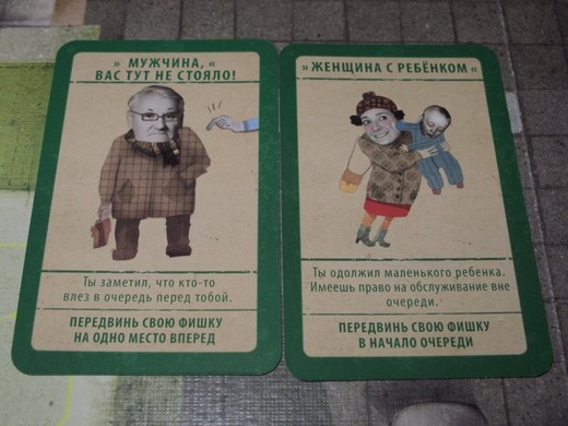 В игре принимают участие от двух до пяти человек. Игроки посылают членов своей семьи покупать продукты из случайного списка. Товары в магазинах могут отсутствовать, поэтому необходимо занять место в очереди, не зная, когда и что доставят в магазин. Здесь можно получить штраф, вытащив карточку «Вас тут не стояло» или пройти без очереди с карточкой «Мать с маленьким ребенком». Также в игре есть «черный рынок», где цены вдвое выше, чем в магазинах.