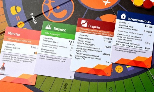 Состав: Карты рынка - 126 шт.; Карты профессий - 12 шт.; Карты возможностей: карты бизнеса - 18 шт., карты недвижимости - 14 шт., карты стартапов - 16 шт., карты индексов - 4 шт.; Карты отдыха - 50 шт.; Карты новостей - 25 шт.; Карты мечты - 22 шт.; Игровое поле; Фишки часов - 144 шт. (6 цветов - по 24 шт. каждого цвета).; Фишки шкалы финансовой независимости - 6 шт. (6 цветов - по 1 шт. каждого цвета).; Фишки шкалы счастья - 6 шт. (6 цветов - по 1 шт. каждого цвета).; Игровые ведомости - 6 шт.; Шестигранный кубик.; Деньги - 192 банкноты различного номинала.; Карандаши - 6 шт.; Приглашение.; Буклет.