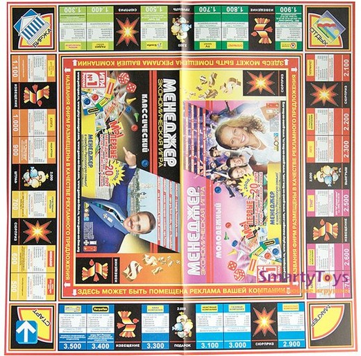 Перед Вами настольная игра «Менеджер Семейный»! Она напомнит Вам старую добрую Монополию. Здесь игрокам так же предстоит брать на себя ответственную роль предпринимателей и вести свой бизнес к процветанию. В игре достаточно конкретно дана информация по ценам и платам в зависимости от количество построенных игроком филиалов компании. Юные бизнесмены могут создавать свои проекты и покупать компании, например, нефтяную.