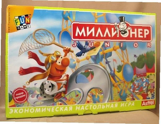 Настольная игра «Миллионер-юниор» это детская версия Миллионера. Теперь в него могут играть детки от 5 лет. Вместо того, чтобы строить огромные скучные монополии дети смогут приобретать настоящие аттракционы и продавая билеты на них обогащаться! Денежная валюта в игре – фант. Правила игры максимально упрощены специально для ребятишек.