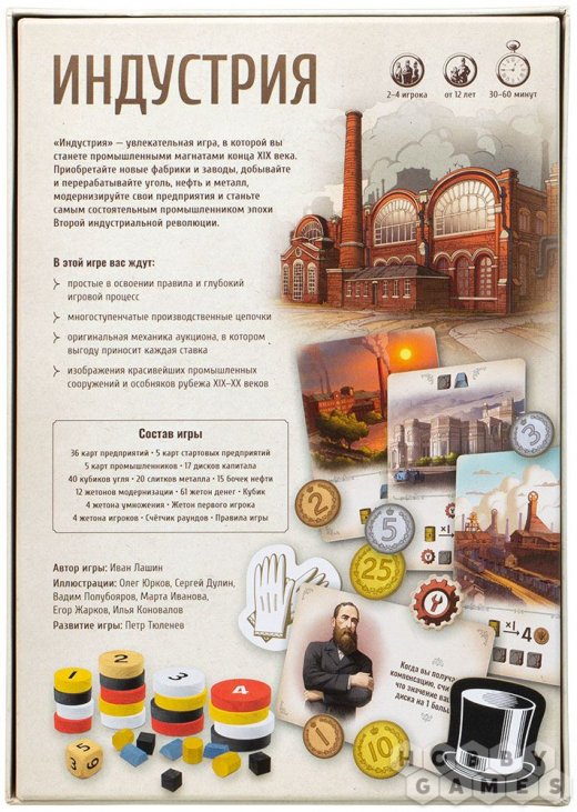 "Индустрия" – это увлекательная экономическая настольная игра, построенная на оригинальной механике аукциона.