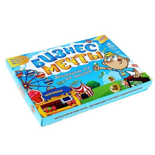 Настольная игра «Бизнес мечты для мальчиков» очень напоминает Монополию. Она создана специально для мальчиков. Имеет схожее с Монополией игровое поле на котором располагаются футбольный клуб, боулинг, хоккейный клуб, картинг и другое. Мальчикам предстоит игровом процессе примерить на себя роль взрослого и ответственного предпринимателя и построить свой собственный бизнес.
