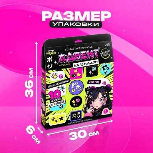 Адвент – календарь «Создай своё украшение» вдохновит на создание собственных маленьких шедевров! За 12 дней до Нового года открывайте по окошку и находите новые элементы для создания украшения. Внутри вы найдёте 10 форм и множество других элементов для ваших изделий.