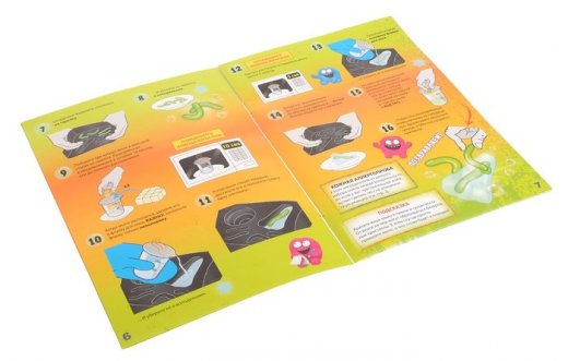 Что же ждёт юного исследователя в этой большой красочной коробке? Секреты создания противной слизи и неприятных газов, а также гвоздь программы: гадкое мыло в форме носа с козявками и не только — пусть это станет для вас сюрпризом! Комплектующие набора просты и безопасны: глицериновое мыло, дрожжи, кукурузный крахмал — но ваш будущий учёный будет удивлён тем, что из них можно создать! А провести опыты поможет красочная инструкция.