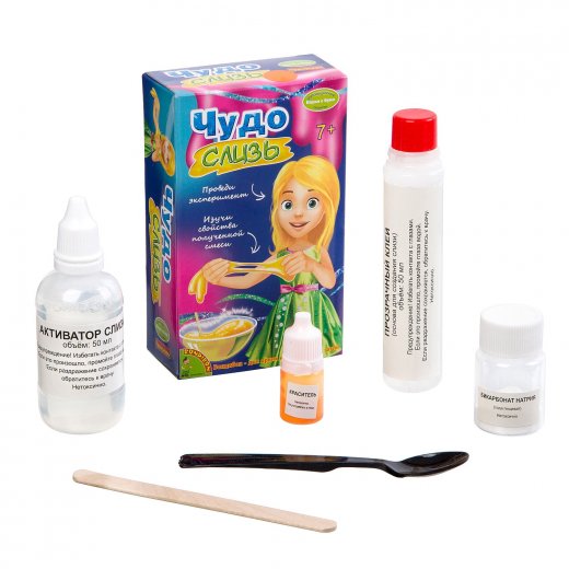 Дети очень любят мять в руках тягучих лизунов, но если они смогут создать это чудо своими руками, то еще и расширят свой кругозор новыми знаниями о физических свойствах веществ. Изучайте химию играя! Проведите ряд забавных экспериментов по созданию чудо слизи или лизуна. Изучите её необычные физические свойства. Внутри вы найдёте все необходимые компоненты. Ребенку необходимо лишь поместить специальные компоненты из комплекта в стакан, размешать их и необычная игрушка с текучей структурой готова. Составляющие набора не вызывают аллергических реакций и раздражений на детской коже, поэтому получившийся лизун станет безопасной и самой любимой игрушкой детей.
