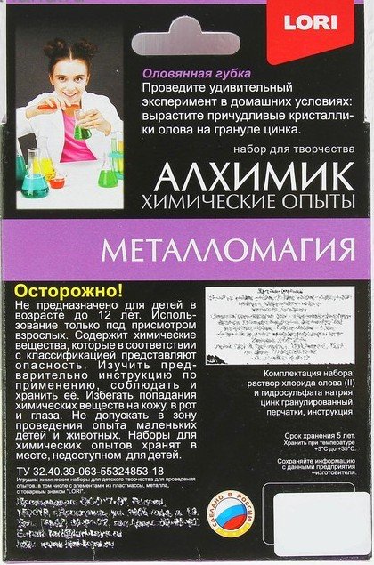 Купить Химические опыты Алхимик Оловянная губка в Новосибирске Вы можете в магазине развивающих и настольных игр "Игры Почемучек"