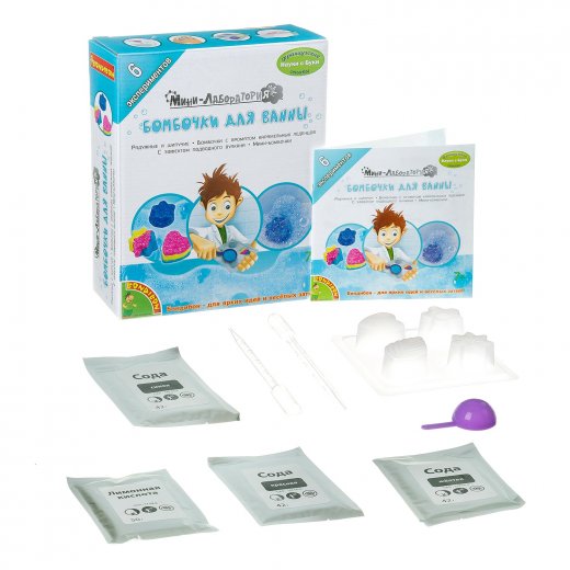 Мини-лаборатория "Бомбочки для ванны" из серии "Французские опыты: Науки с Буки" от бренда Bondibon представляет собой увлекательный набор, с помощью которого можно создать ароматные, радужные и шипучие гейзеры для купания. В комплекте можно найти все необходимые инструменты и препараты, чтобы устроить настоящую лабораторию у себя дома и провести 6 интересных экспериментов.