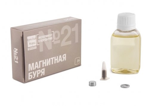 Состав набора: флакон растительного масла, металлический порошок, пробирка, магнит, пошаговая инструкция.