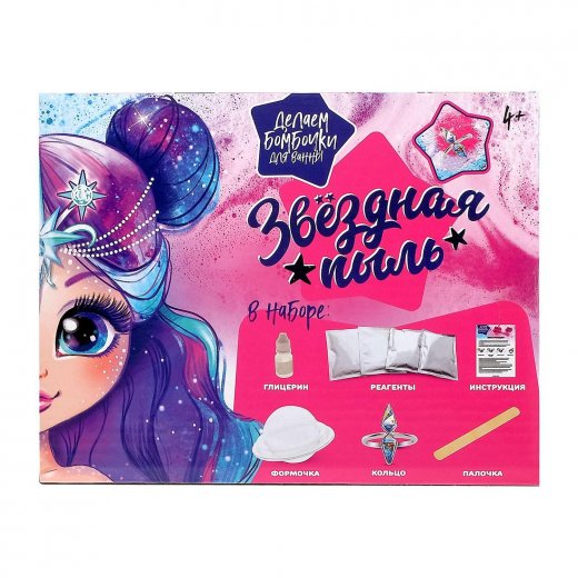 С помощью набора «Звездная пыль» у ребёнка получится самостоятельно сделать 2 бурлящие бомбочки для ванны.