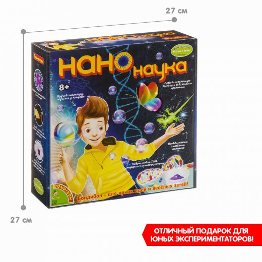 Набор "Нанонаука" от BONDIBON пожалуй лучший подарок для любознательного ребенка! Ведь "Нанонаука" охватывает широчайший спектр самых интересных тем, связанных с окружающим миром. Благодаря красочному буклету, входящему в набор, и проведению захватывающих опытов можно узнать, зачем современная наука учится у природы, как крылья бабочки вдохновили ученых на создание сверхбыстрого интернета и почему так важно бережно относится к природе. С набором для опытов "Нанонаука" Ваш ребенок проведет досуг весело и с пользой!