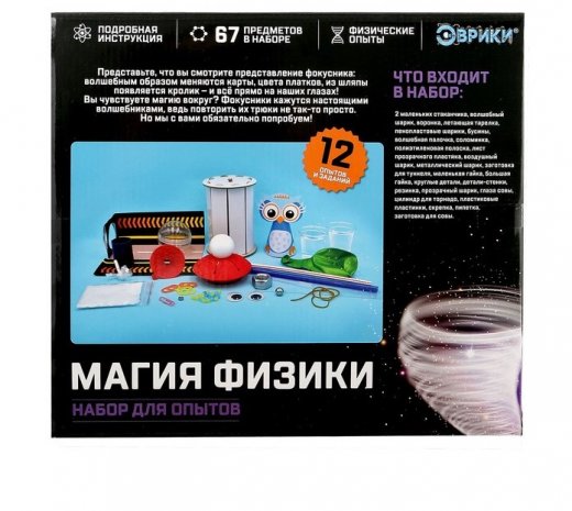 С набором для опытов «Магия физики» ребёнок почувствует себя настоящим учёным, сможет управлять летающими шариками, сделает настоящий торнадо и многое другое.