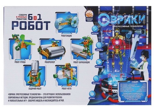 Малыш любит играть, но не любит учиться? С набором для опытов «Робот 6 в 1» ребёнок сам сможет сделать необычного многофункционального робота и при этом изучить основы физики.