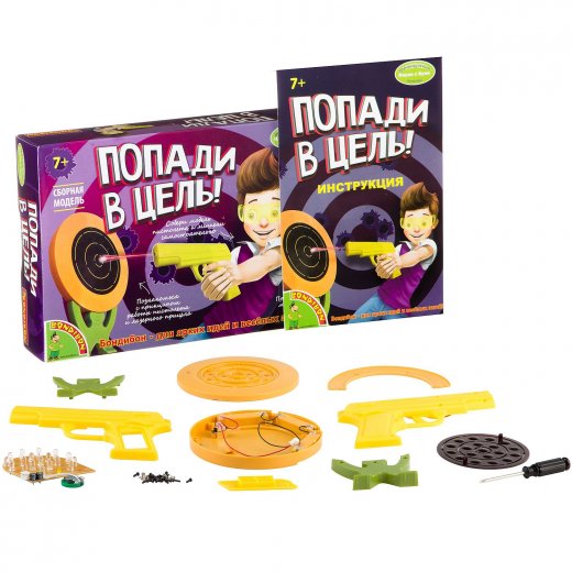 Французские опыты "Попади в цель" – увлекательный набор, в котором предстоит самостоятельно собрать пистолет и мишень. Пистолет с лазерным прицелом поможет натренировать меткость и почувствовать себя специальным агентом по обезвреживанию преступников.
