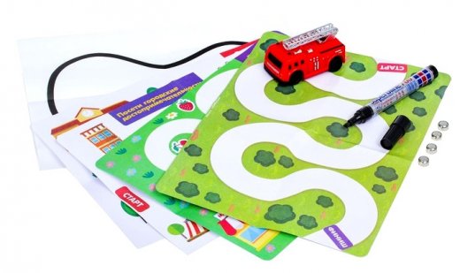 Состав набора: машинка, маркер, маршруты.