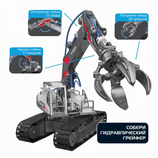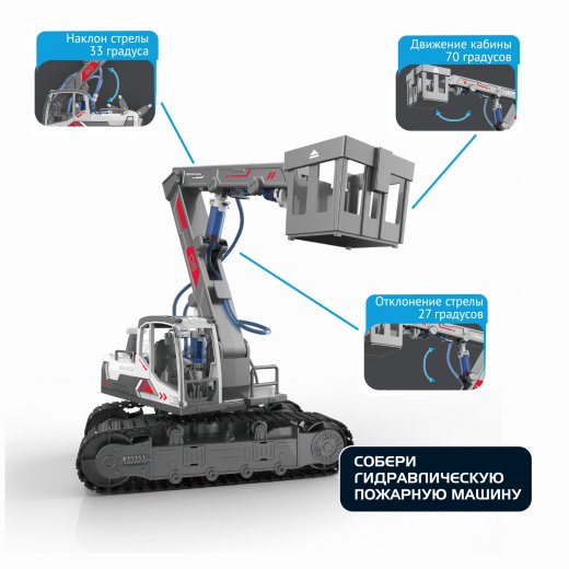 В моделях из набора используются гидравлическая система для приведения моделей в движение. Техника работает в точности, как в настоящих машинах.