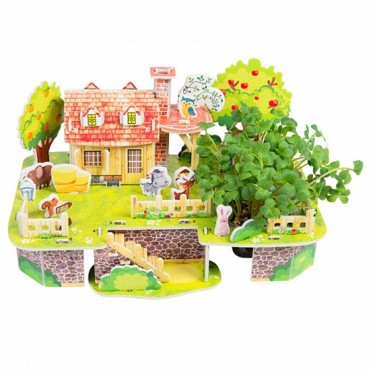 Игровой набор поможет вашему ребёнку стать настоящим садоводом и самому вырастить живые растения. Соберите из элементов 3D-пазла объёмный домик и сад с забором, плодовыми деревьями и милыми зверушками. Без ножниц и клея! Насыпьте в контейнер грунт и посадите семена редиса. Ухаживайте за мини-огородом, поливайте почву и записывайте наблюдения в журнал. Результат не заставит себя долго ждать! В подробной инструкции вы найдёте интересные советы по выращиванию мини-огорода.