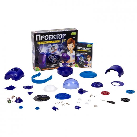 Ребёнок увлекается космосом или хочет стать космонавтом? Порадуйте малыша набором Проектор 2 в 1 от BONDIBON. Следуя подробной инструкции, ребёнок самостоятельно познакомится с принципами работы проектора и соберёт действующую модель. Кроме того, он узнает интересные факты из истории освоения космоса и изучит планеты, звёзды и галактики. В наборе: детали для сбора проектора, 3 диска для просмотра слайдов, ката звездного неба, карта созвездий, лампа, отвертка, двояковыпуклая линза. Дополнительно понадобятся батарейки АА 3 шт.