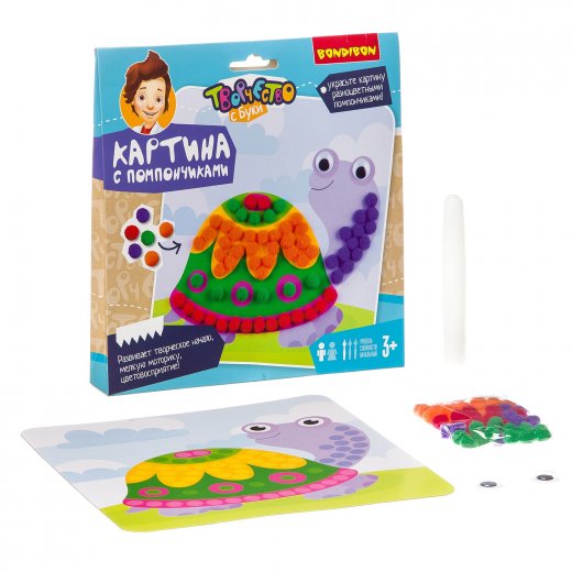 Купить Набор для творчества BONDIBON Картины с помпончиками Черепашка в Новосибирске Вы можете в магазине развивающих и настольных игр "Игры Почемучек"