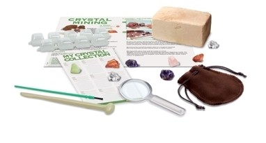 Настоящие кристаллы таятся в гипсовом блоке – ребенок сможет почувствовать себя настоящим геологом, когда откроет тайник с драгоценностями. Познавательные факты, научные материалы, карточки для описания кристаллов входят в комплект. Этот набор будет полезен ребенку, который только начинает знакомство с природой, географией и физикой.