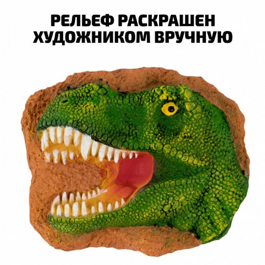 Состав набора: кусочек гипса в виде динозавра (9,5х3х8,5 см), с 3-мя окаменелыми ископаемыми (кость динозавра, зуб мосазавра, копролит); кисточка, стек, лупа, буклет, инструкция.
