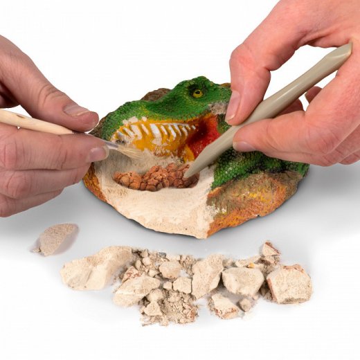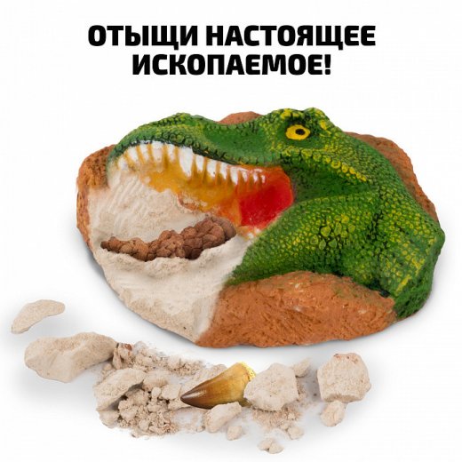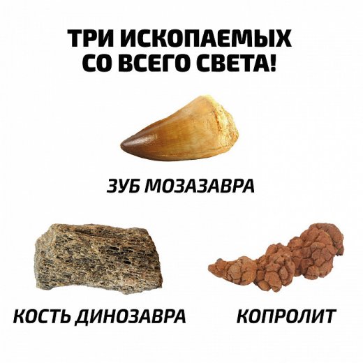 С этим игровым набором ваш ребёнок почувствует себя настоящим палеонтологом. В кусочке породы спрятаны 3 настоящих окаменелых останка динозавра! Юный исследователь найдет кость динозавра, зуб мосазавра и копролит динозавра. Прочитайте красочный буклет и узнайте интересные факты о том, что такое ископаемые, как их находят, о чем они могут рассказать и многое другое.