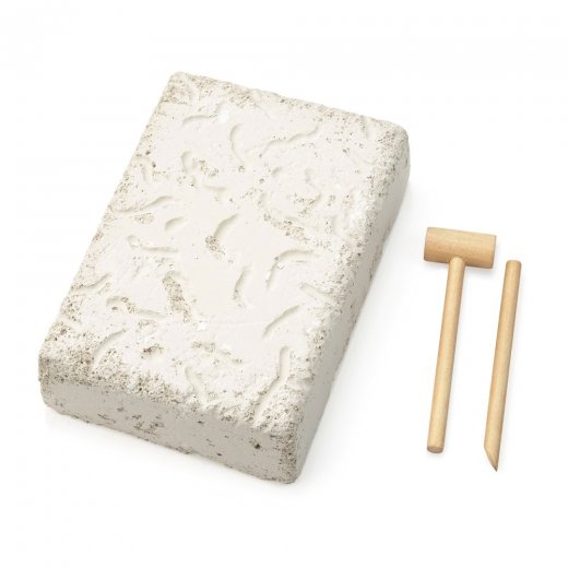 Состав набора: молоточек, стек для дробления, окаменелый грунт, артефакты, пластиковая лупа.