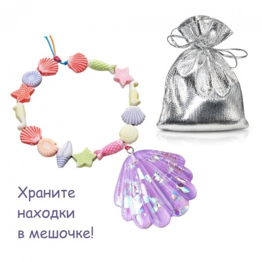 Давным-давно чудесные русалки спрятали свои украшения на дне волшебного моря. Сегодня они могут стать вашими! Возьмите специальные инструменты, смочите грунт водой и начинайте аккуратно, слой за слоем, убирать породу. Когда откопаете все находки, помойте их и высушите. Из красивых морских бусин можно сделать браслет точь-в-точь как у морских русалок! Чтобы его было удобнее хранить, в наборе есть специальный мешочек.