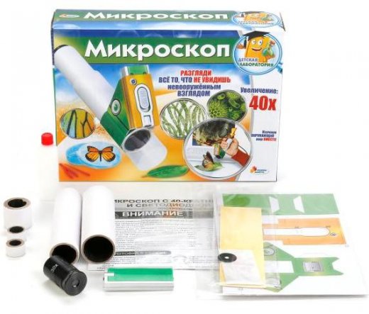 Маленьким исследователям всегда интересно изучать окружающий мир, открывая для себя что-то новое и интересное. С набором от российской компании «Играем вместе» дети смогут самостоятельно собрать микроскоп и погрузиться в изучение молекулярного мира, невидимого невооруженным глазом. Из входящих в набор предметов можно собрать самый настоящий микроскоп, увеличение которого достигает 40 раз.