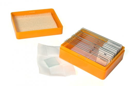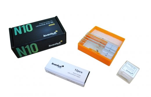 Кроме того к набору прилагаются чистые предметные и покровные стекла, которые можно использовать для изготовления собственных микропрепаратов. Предметные стекла имеют шлифованные края, благодаря чему блики от граней стекла не помешают исследованиям. Готовые микропрепараты, предметные и покровные стекла могут использоваться с биологическим микроскопом любой модели.