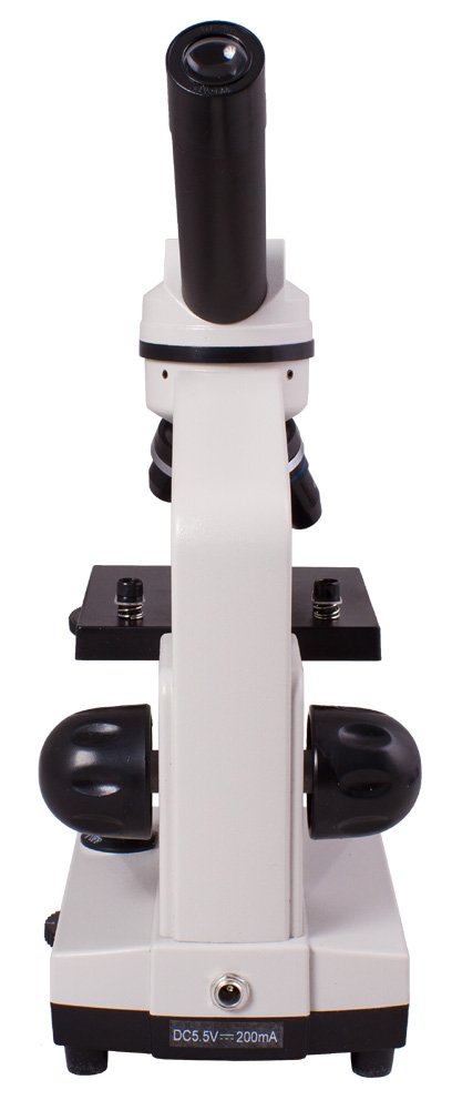Микроскоп снабжен двумя светодиодными осветителями. Яркость подсветки регулируется, так что для каждого препарата можно подобрать подходящий уровень освещения. Корпус сделан из прочного пластика, так что микроскоп получился надежным и в то же время легким. Благодаря наклону окулярной насадки начинающий исследователь не будет уставать при занятиях с прибором. Подсветка может работать и от сети переменного тока, и от стандартных батареек.
