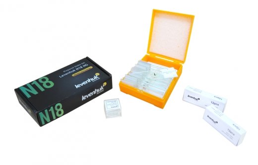 Кроме того к набору прилагаются чистые предметные и покровные стекла, которые можно использовать для изготовления собственных микропрепаратов. Предметные стекла имеют шлифованные края, благодаря чему блики от граней стекла не помешают исследованиям.