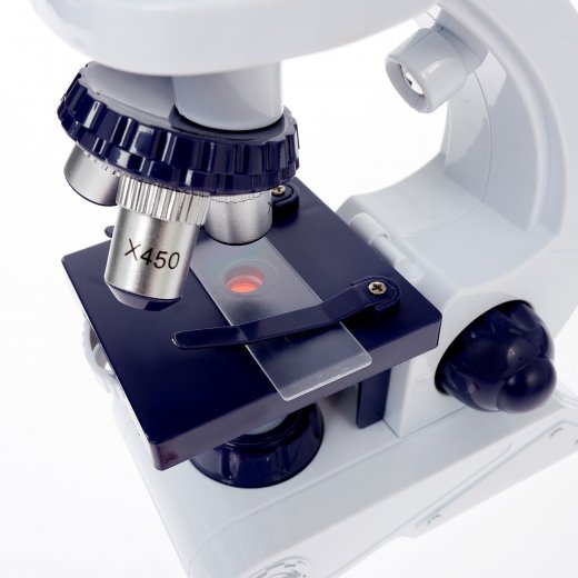 Микроскоп увеличивает изображение в 80‒450 раз. С оптическим инструментом учёба превратится в увлекательный процесс, а все естественные науки перейдут в разряд любимых. Прибор станет хорошим дополнением к школьной литературе.